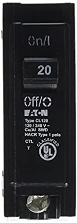 Eaton Corporation CL120CS Single Pole Ul Classified Replacement Breaker, 120V, 20-Amp