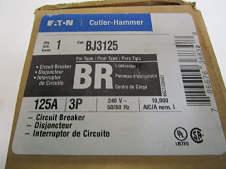 EATON CUTLER HAMMER BJ3125 Type BJ Breaker 125A/3 Pole 240V 10K Req 6 Spaces