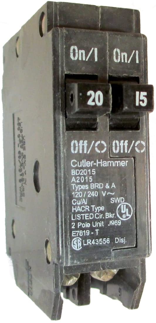 Eaton Cutler-Hammer BD2015 Type BR Duplex Twin 2 Pole 20A /15A Circuit Breaker Rejection Type