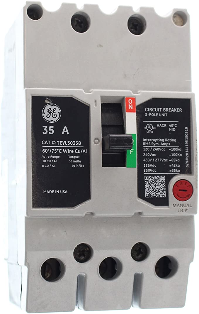GE TEYL3035B Circuit Breaker, 277/480-Volt, 3-Pole, 35-Amp, 65kAIC, Type TEYL