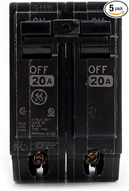 GE THQL2120 Plug-In Circuit Breaker, 2-Pole, 20-Amp, 120/240-Volt (5 Pack)