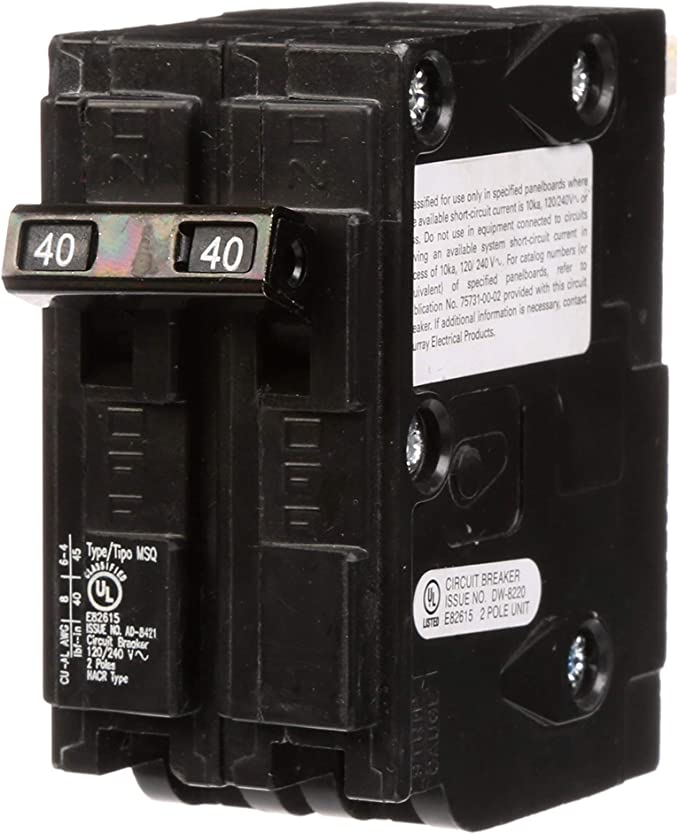 Murray MQ240 Type Msq Circuit Breaker, 120/240 Vac, 40 A, 2 P, 10 Ka