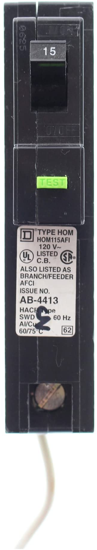 SCHNEIDER ELECTRIC 120-Volt 15-Amp HOM115AFI Miniature Circuit Breaker 120V 15A