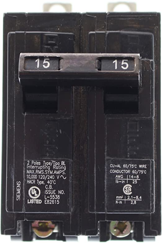 Siemens B215 Bolt-In Circuit Breaker, 120-Volt, 2-Pole, 15-Amp, 10KAIC